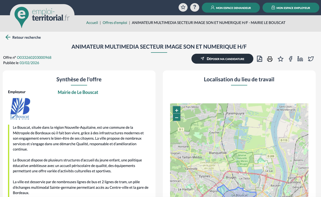 ANIMATEUR MULTIMEDIA SECTEUR IMAGE SON ET NUMERIQUE H/F - 01/04/2026
