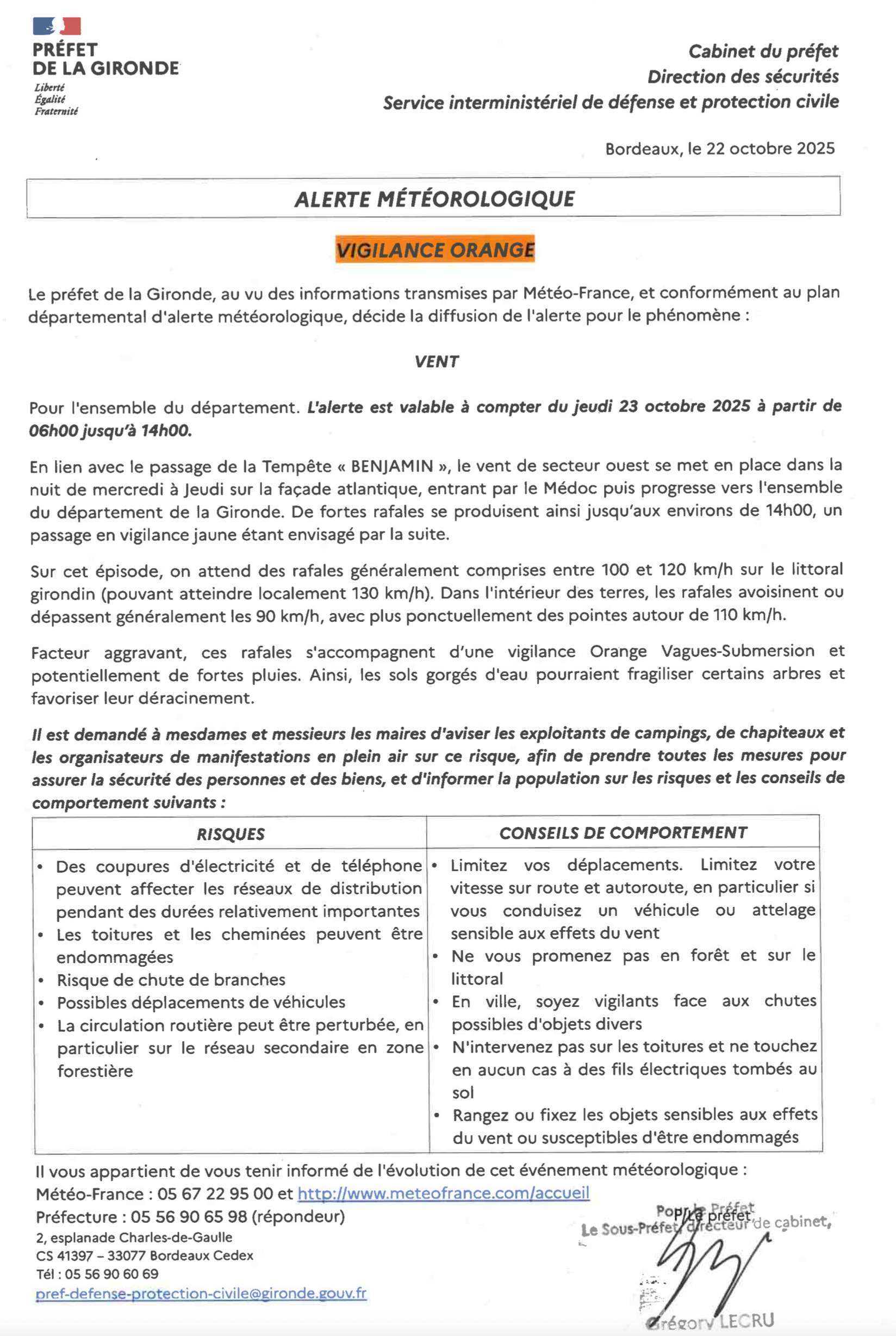 Le département de la gironde est placé en vigilance orange pour vent
