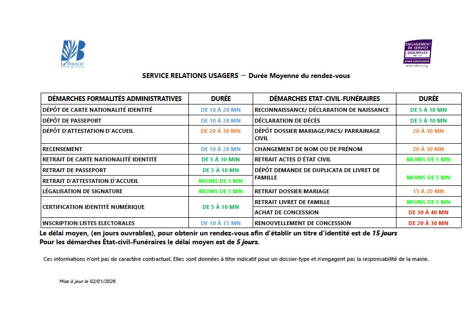 TOUTES LES DÉMARCHES S'EFFECTUENT SUR RENDEZ-VOUS