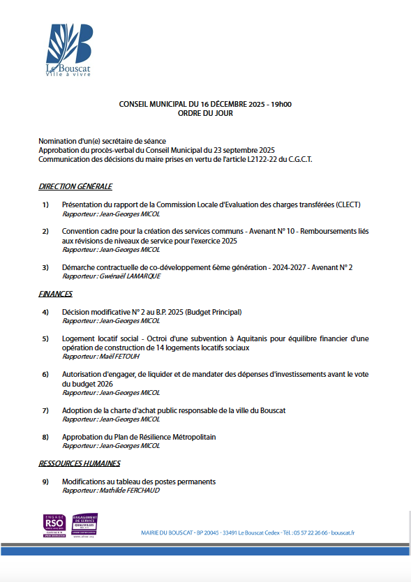 CONSEIL MUNICIPAL DU 16 DÉCEMBRE 2025
