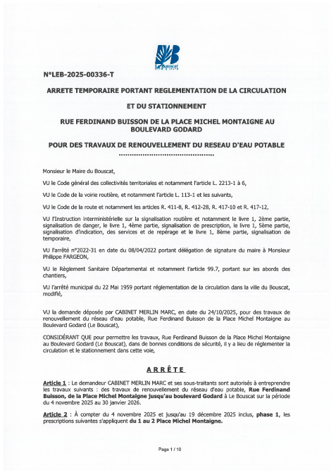 Pour suivre les travaux au quotidien, consulter l’arrêté ci-joint.